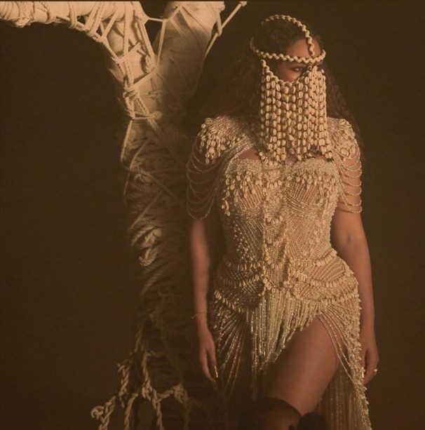The second imagery that echoes throughout the visual album is Beyoncé as saviour in forms of various incarnations. This is not a new way of how she represents herself. One of her most famous interpretations was her golden sparkling dress with the sun crown at the Grammy’s in 2017, where she impersonated an African fertility goddess which was very fitting, as at that point, she was pregnant with her twins. Another example is her infamous and iconic 2018 music video Apeshit where she impersonated Aphrodite, Nike, Holy Mary and ultimately represented herself as the Mona Lisa of the 21st century.